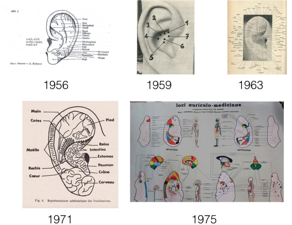 • NOGIER Paul : « Le pavillon de l’oreille . Zones et points réflexogènes »Février 1956. Bulletin de la société d’acupuncture- n° 1956.