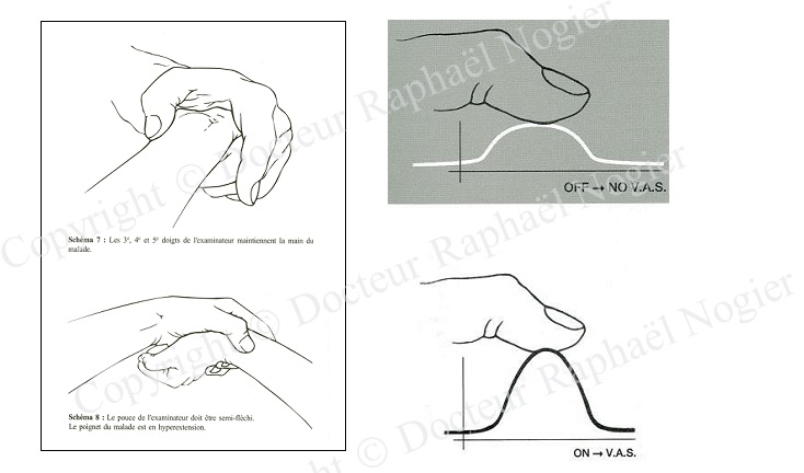 Poursuivant ses recherches, Paul Nogier découvre en 1966 un nouveau phénomène qu’il appelle le RAC (réflexe auriculo cardiaque) (19)(20). Il constate qu’une pression exercée sur certains points d’oreille déforme momentanément le pouls radial. Le rythme des pulsations cardiaques ne varie pas mais le pouls devient plus ou moins dur durant deux ou trois pulsations. Ce phénomène artériel, fin, délicat, difficile à étudier, perceptible manuellement sur l’artère radiale a été ensuite appelé VAS, vascular autonomic signal, en français le signal vasculaire. Il va de soi qu’il est nécessaire de s’exercer longuement pour ressentir ces minimes variations du pouls.